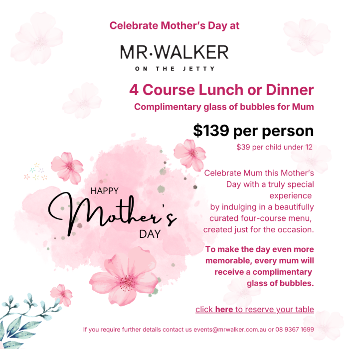 Celebrate Mum in style this Mother’s Day at Mr Walker.